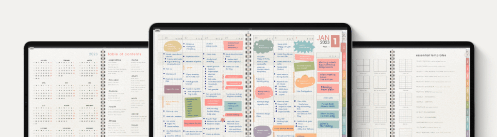 Each planner and notebook includes over 55 essential templates to organize your day, projects, goals, and ideas. Designed to simplify your life in every way.