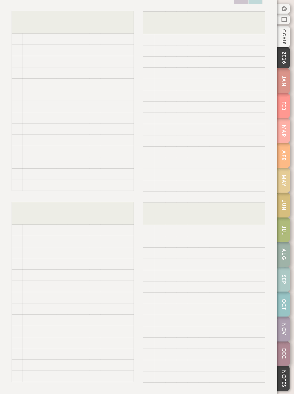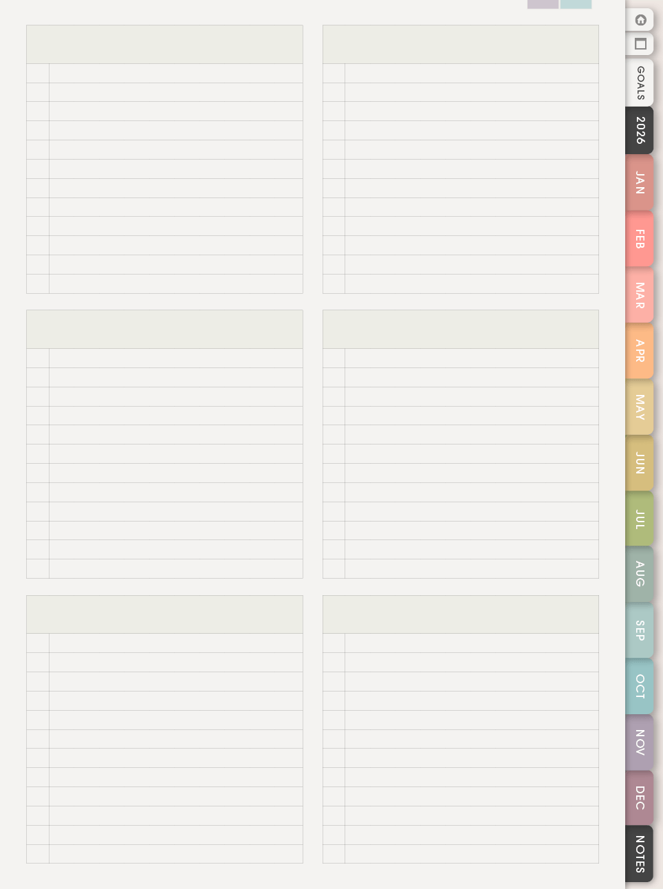 A grid layout to track important events or tasks across the year, giving structure to your yearly overview.