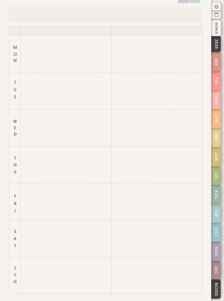 An alternative daily layout offering flexibility for tasks, journaling, or reflections.
