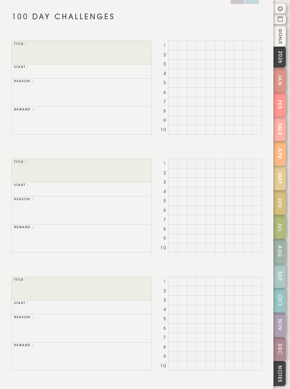 Take on longer-term goals with a 100-day challenge template to track your progress and stay accountable.