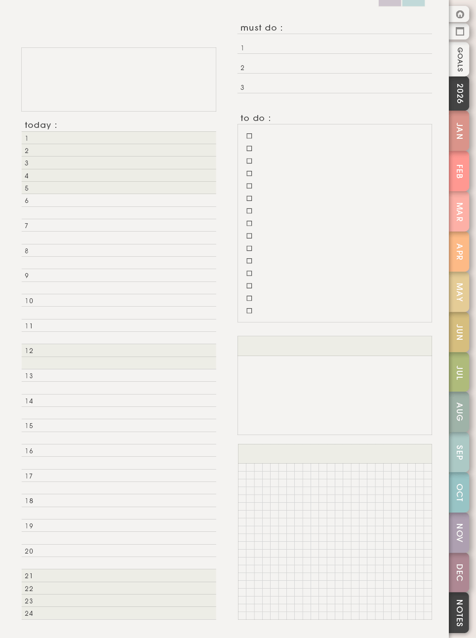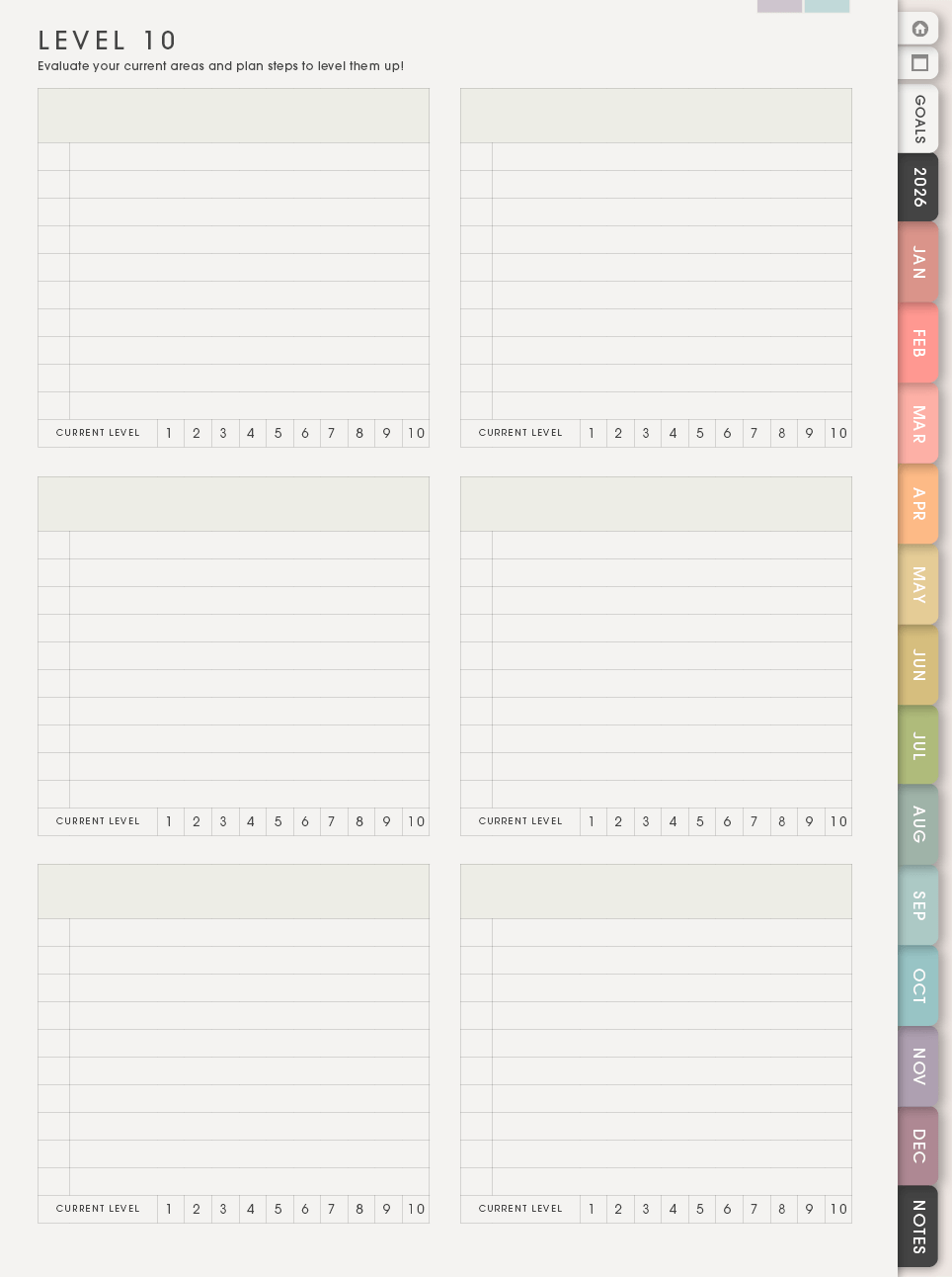 These are ready-made layouts for planning, tracking, and organizing all areas of your life. Use it to plan everything faster and stay inspired!