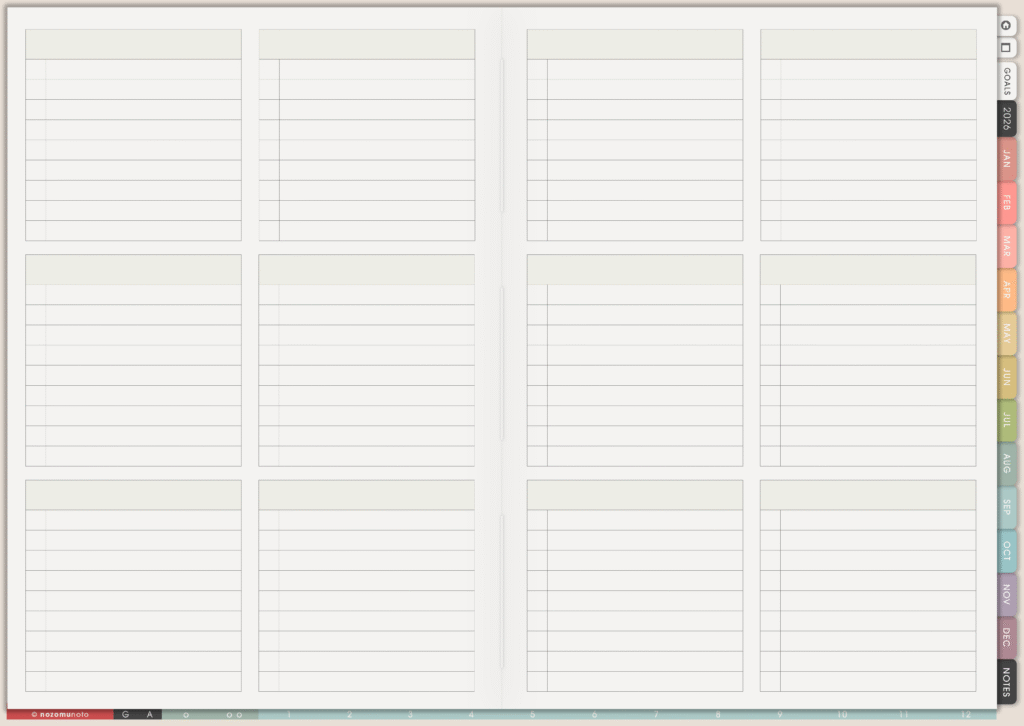 A grid layout to track important events or tasks across the year, giving structure to your yearly overview.