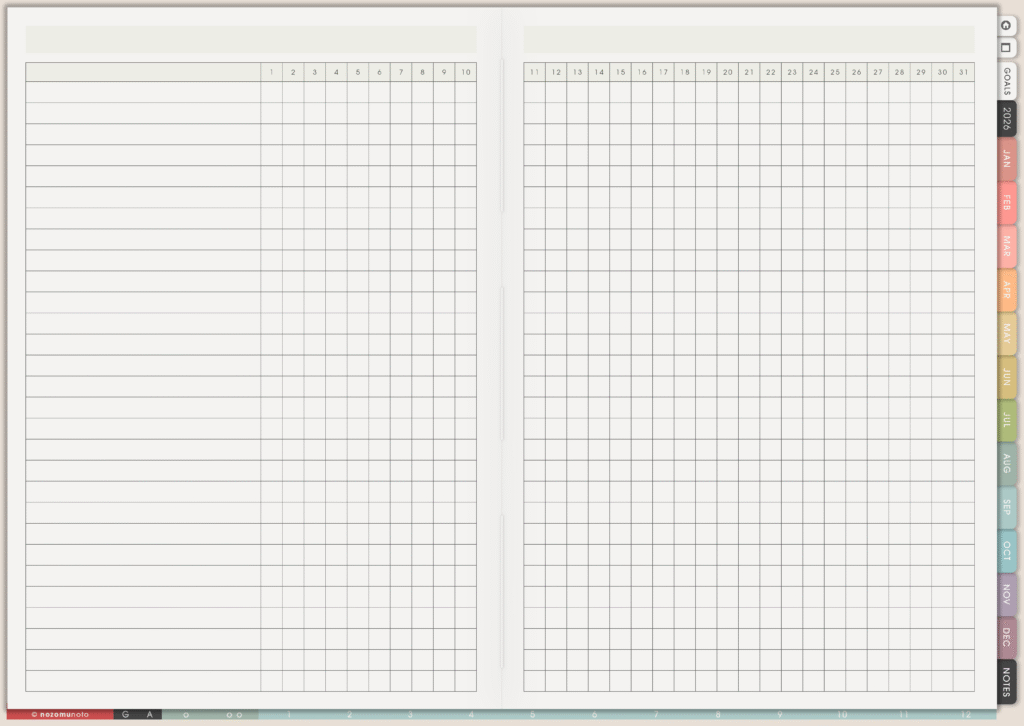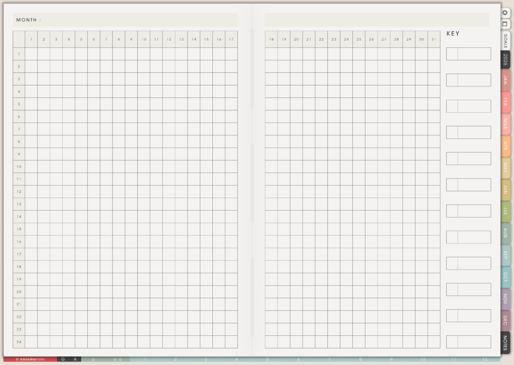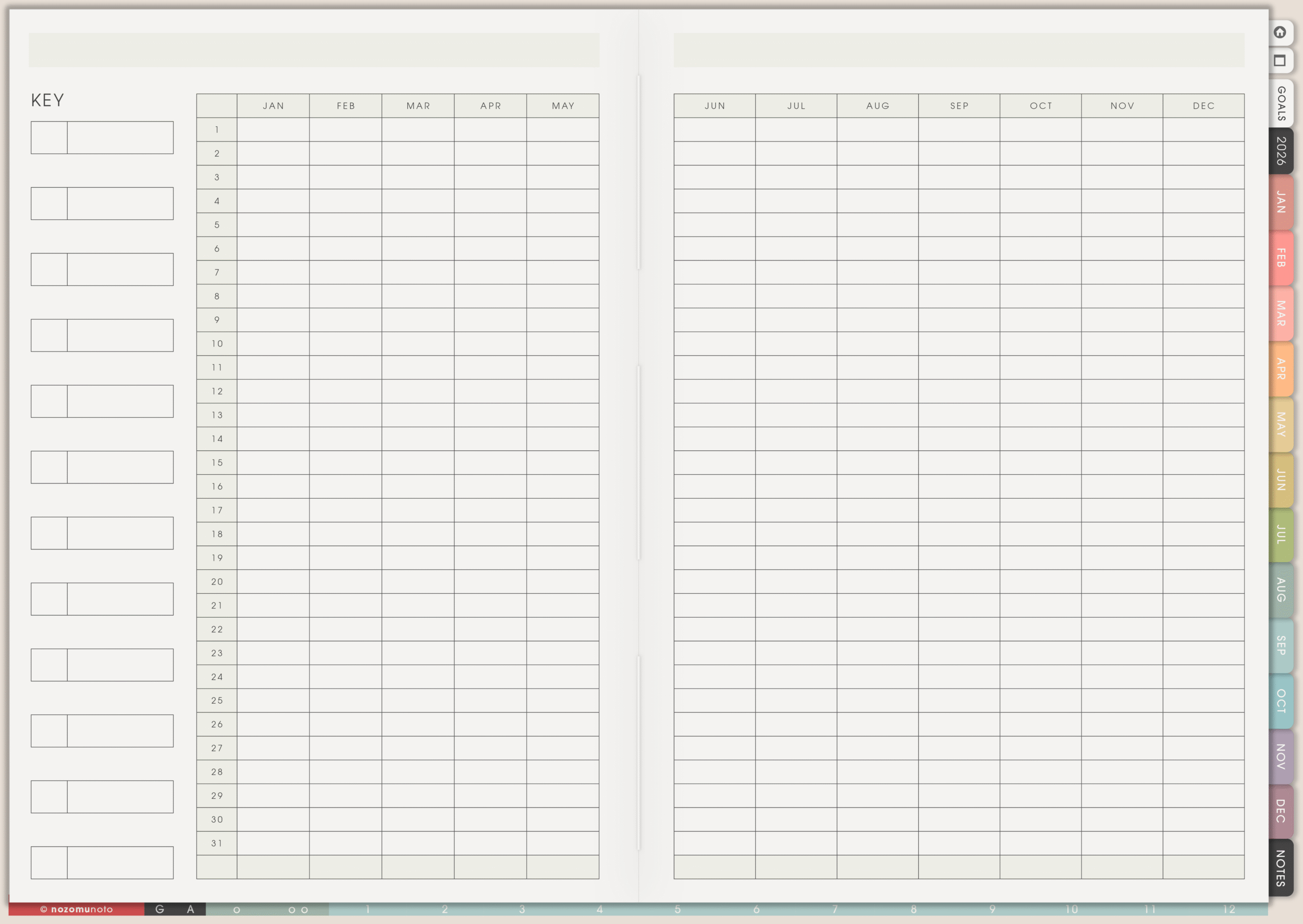 Track your habits or events with a yearly overview that breaks down each month into daily segments.