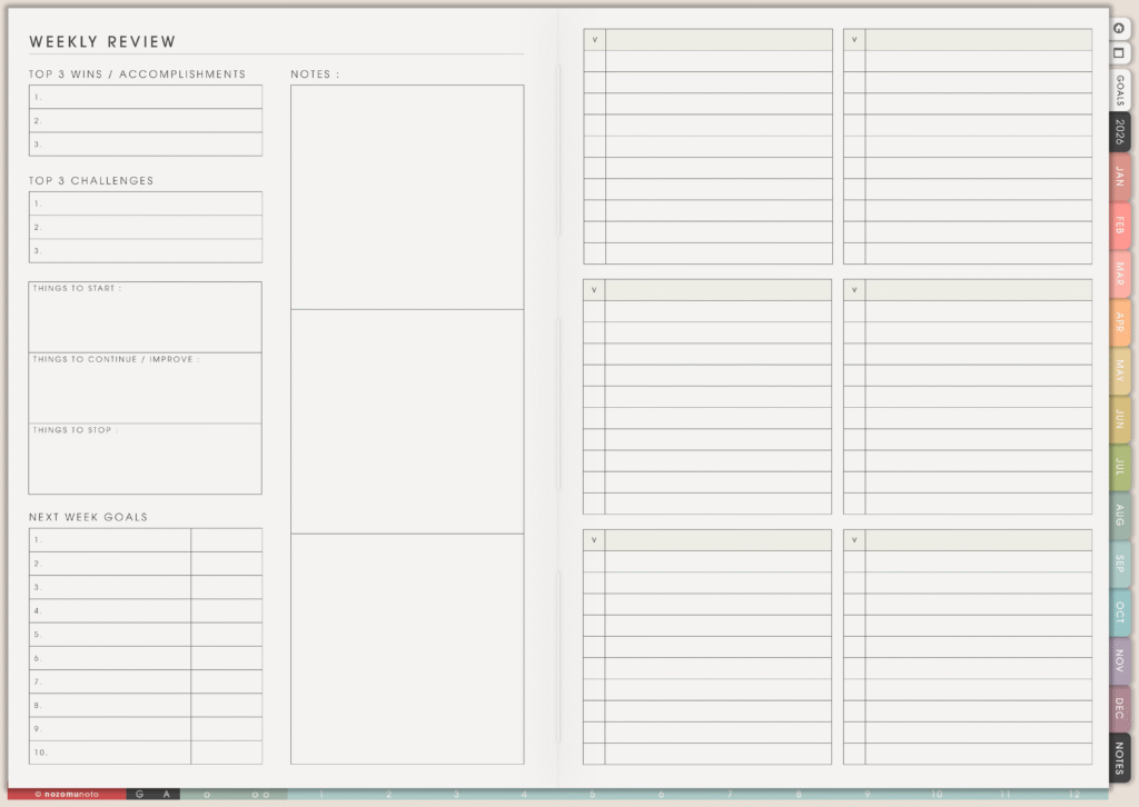 These are ready-made layouts for planning, tracking, and organizing all areas of your life. Use it to plan everything faster and stay inspired!
