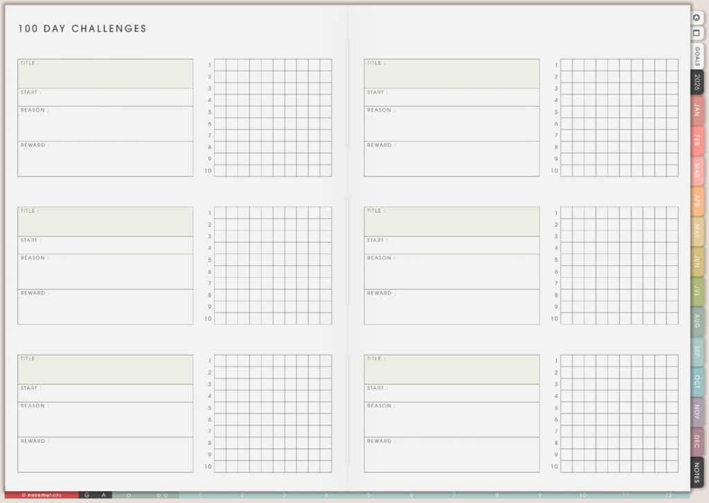 Take on longer-term goals with a 100-day challenge template to track your progress and stay accountable.