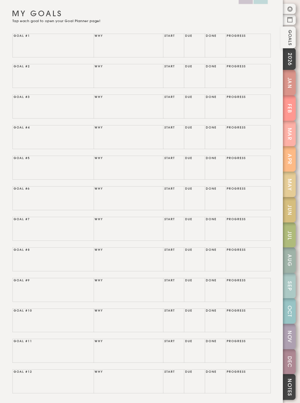 Tap a goal from the Life Planner Index Page – My Goals to open your detailed Goal Planner page.