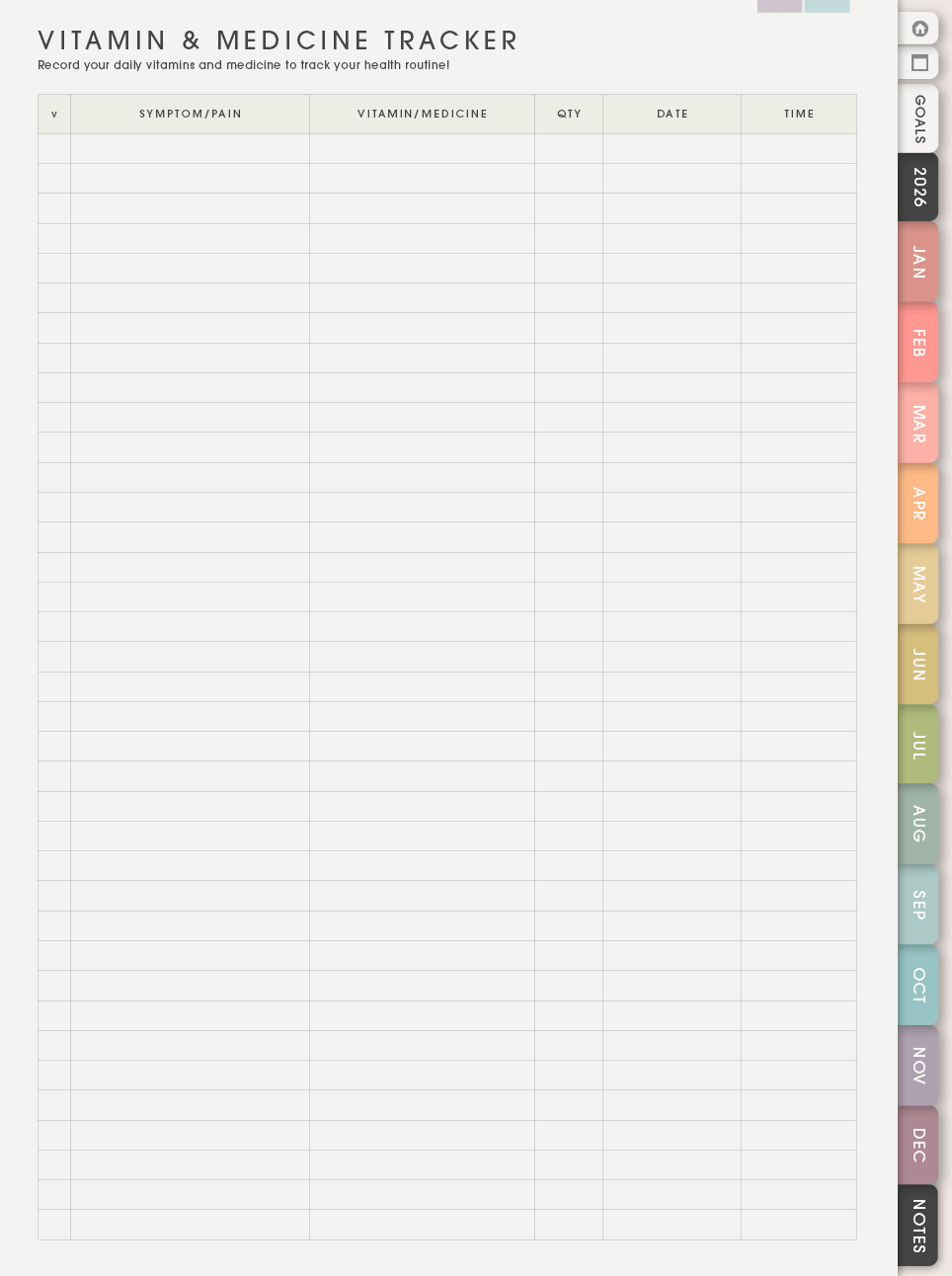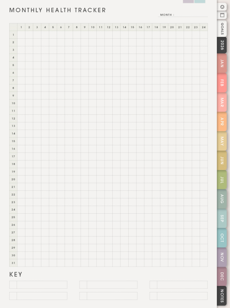 Track important health-related data like sleep, periods, or habits over the course of the year. Use this to spot patterns and make improvements.