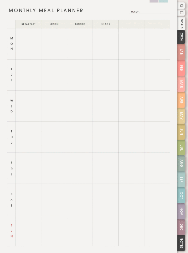 Plan out your meals for the month to stay organized, save time, and reduce stress during grocery shopping. Ensure balanced meals that fit your lifestyle.