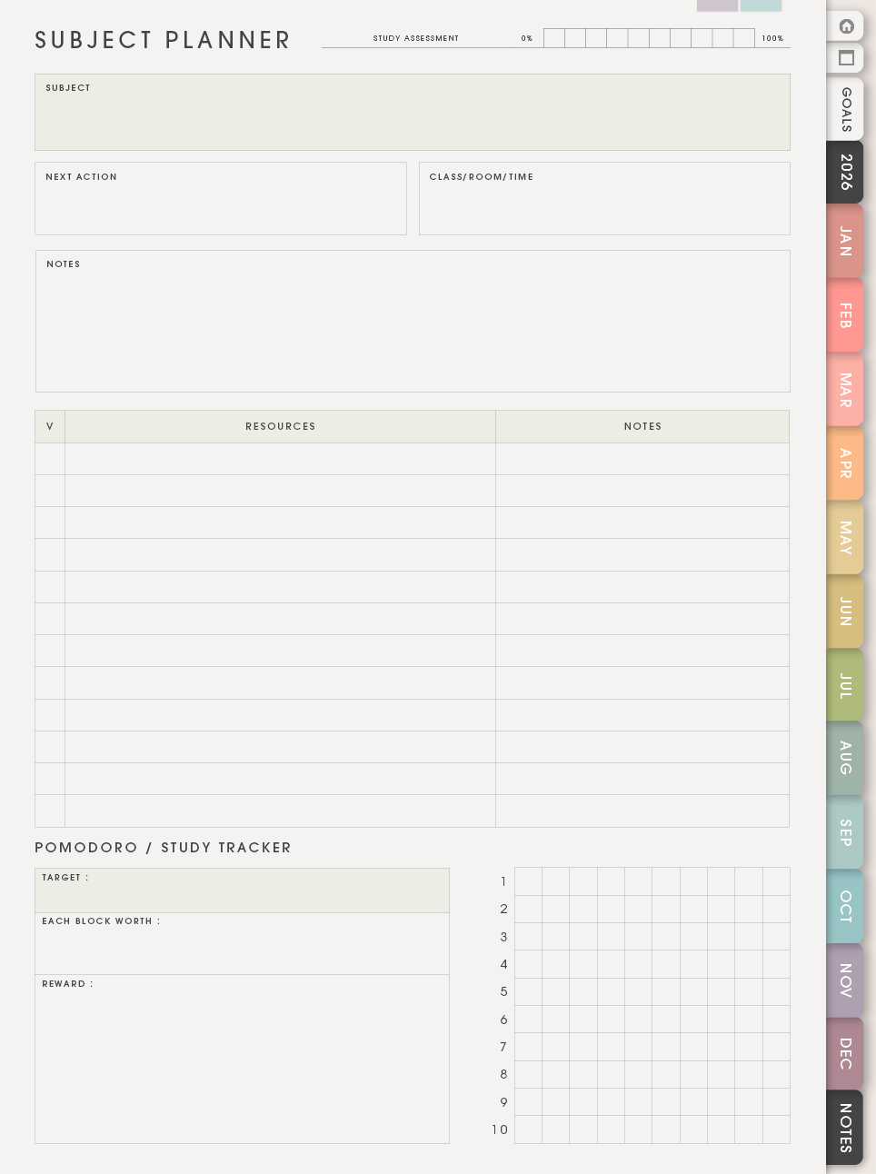 Organize each subject in detail, from assignments to exam preparation, ensuring nothing falls through the cracks.